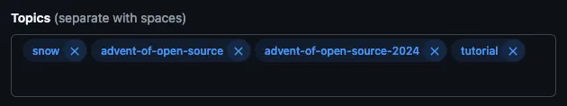 You created your repository on the first day of the Advent of Open Source, but perhaps without a clear vision for its direction. Now that you’ve had some time to develop the project further, it’s a great opportunity to update its key information and refine its presentation.